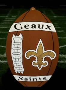 Gold fleur-de-lis & “Geaux Saints” banners